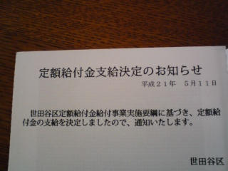 そんなこんなで昨日。忘れた頃にやってきました、定額給付金!